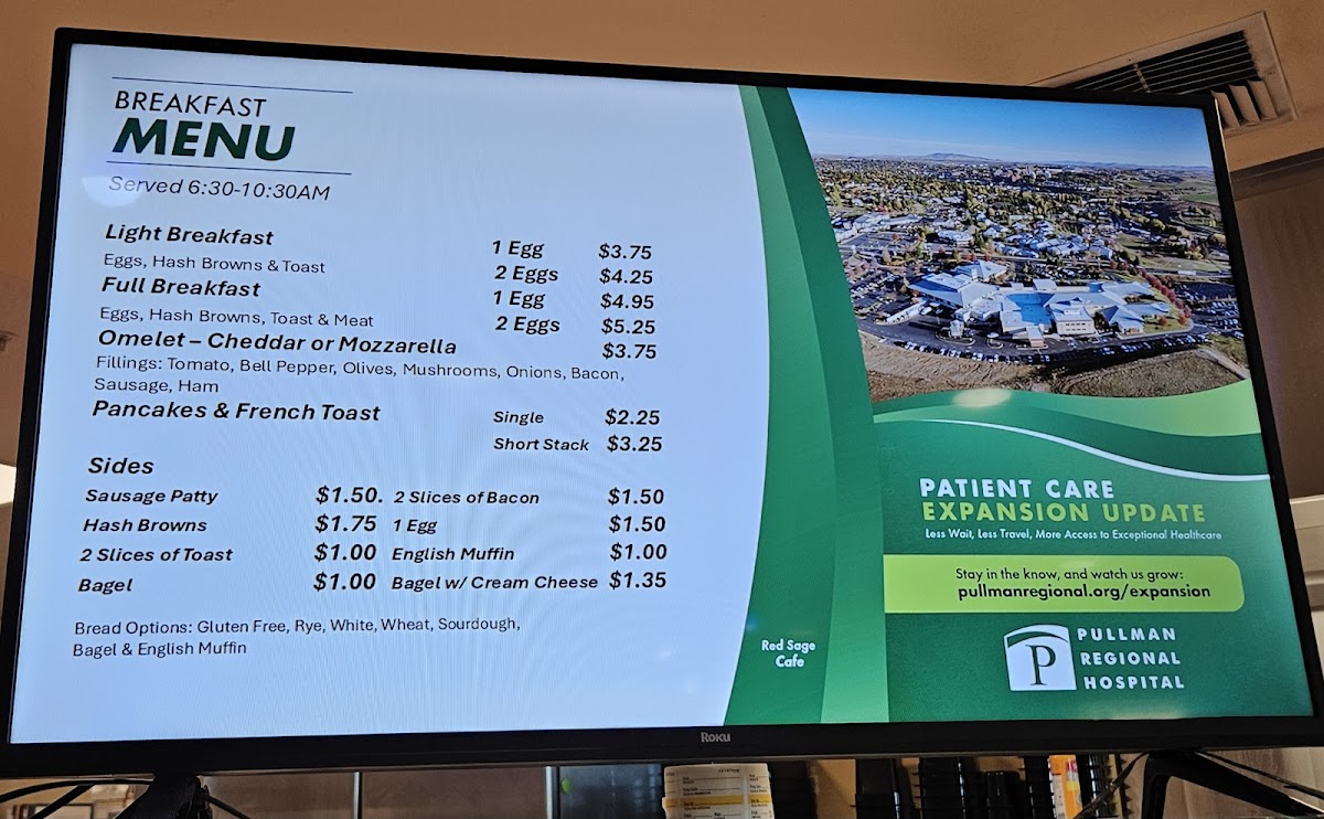 Welcome to Red Sage Cafe, a hidden gem located at 835 SE Bishop Blvd, Pullman, WA. This charming cafeteria offers a diverse menu that caters to all tastes and occasions. Start your day with a delightful breakfast featuring light options from just US$3.75 to a hearty full breakfast at US$4.95. For lunch, indulge in a range of delectable burgers and grilled sandwiches, with prices starting at US$3.50.